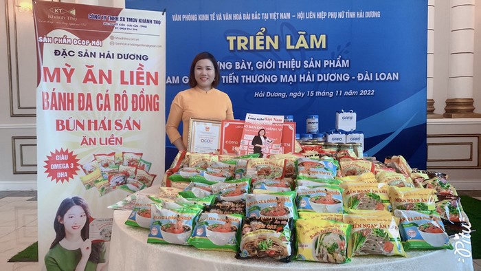 chị Bùi Thị Khánh sản xuất mì ăn liền, bún ăn liền từ các nguồn nguyên liệu được trồng trọt, chăn nuôi ngay trên mảnh đất quê hương Sau gần 2 năm nghiên cứu, năm 2018, chị Khánh thành lập Công ty TNHH SX TMDV Khánh Thọ có địa chỉ tại số 53 đường Yết Kiêu, Phường Hải Tân, Thành phố Hải Dương do chị làm Giám đốc. Công ty hoạt động theo mô hình khép kín, từ cung cấp con giống, thức ăn chăn nuôi và bao tiêu sản phẩm đầu ra cho bà con nông dân. Khánh Thọ cũng tự hào là đơn vị đầu tiên tại Việt Nam sản xuất mỳ ăn liền bằng nguyên liệu cá rô đồng thật. Trên dây chuyền máy móc công nghệ Nhật Bản, miếng cá được hút chân không tiệt trùng, kết hợp với bánh đa và nước sốt tạo nên một món ăn dân dã, đậm đà vị quê hương. Được sản xuất trên dây chuyền công nghệ sản xuất hiện đại nên sản phẩm của công ty Khánh Thọ luôn đảm bảo an toàn về chất lượng, vệ sinh thực phẩm, không chứa các chất phụ gia độc hại. Hiện nay, công ty đã cho ra thị trường 16 dòng sản phẩm, dự kiến trong năm 2023 sẽ có thêm 1 số sản phẩm mới, trong đó, có 11sản phẩm được Uỷ ban nhân dân tỉnh Hải Dương cấp chứng nhận OCOP 4 sao.