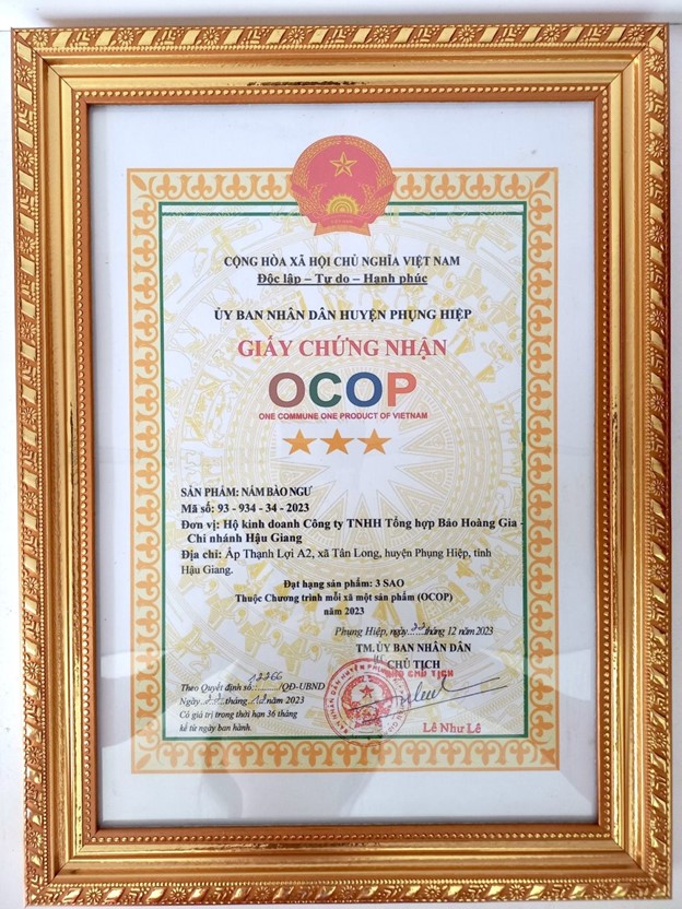 Sản phẩm nấm bào ngư của đơn vị đạt OCOP 3 sao cấp huyện năm 2023