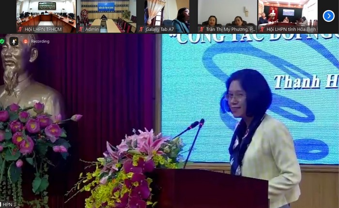 Hội thảo diễn ra tại Thanh Hoá và được kết nối trực tuyến với Hội LHPN các tỉnh, thành phố toàn quốc (Ảnh: Báo Thanh Hóa)