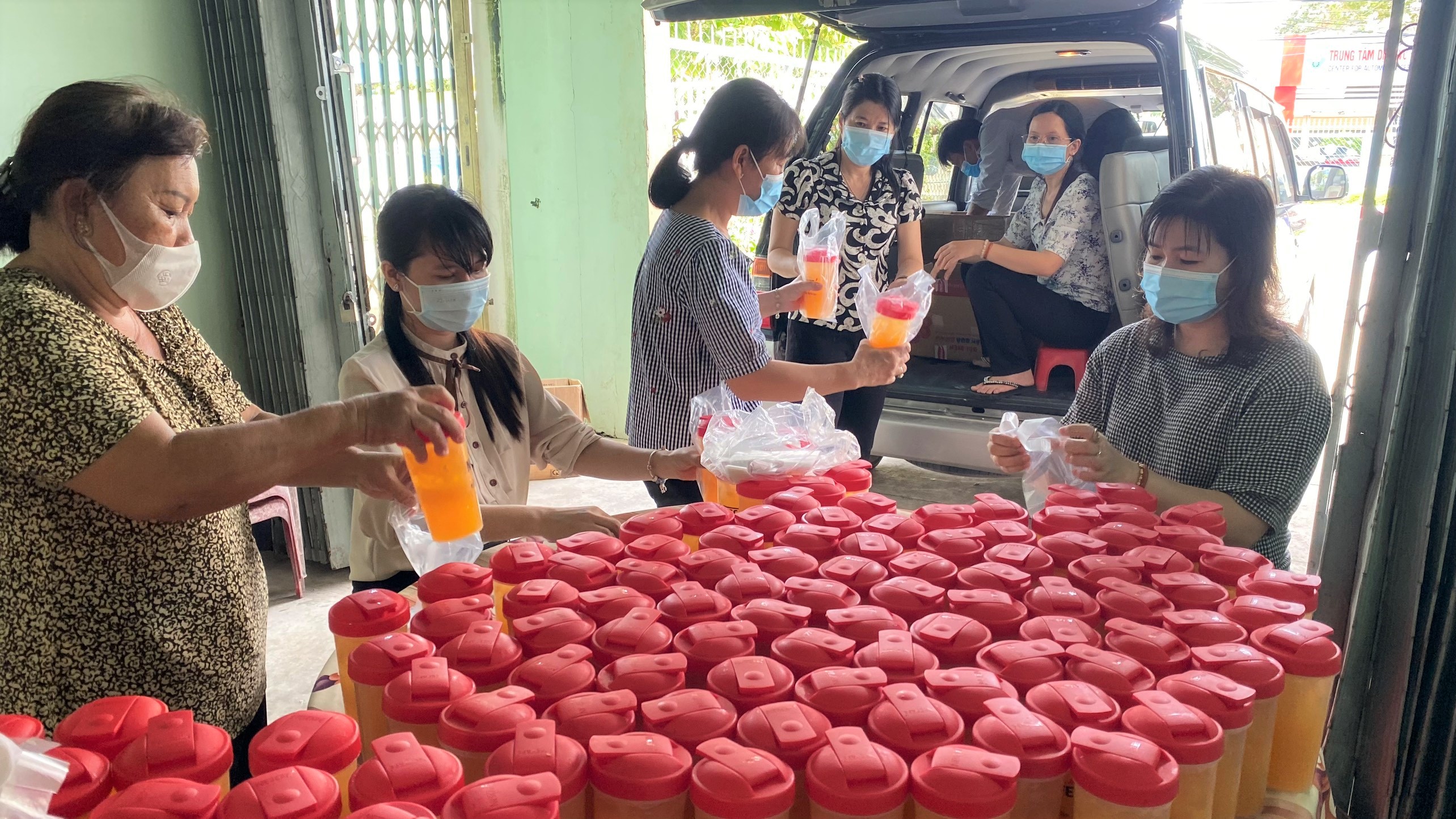 Vĩnh Long: Trên 1.000 ly nước cam gửi tặng người dân từ TP. Hồ Chí Minh về thực hiện cách ly tập trung