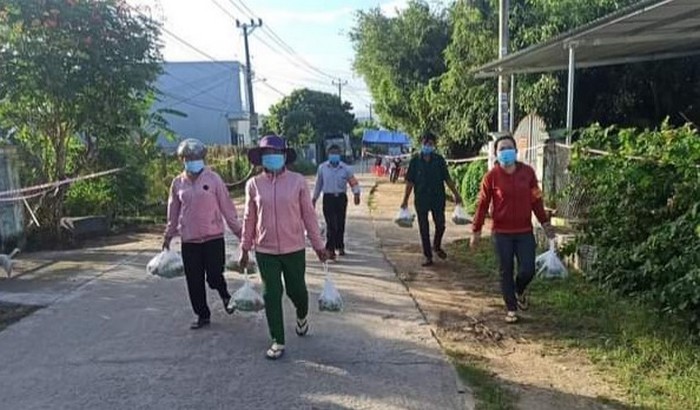 Hội viên phụ nữ xã Tân An, huyện Đak Pơ hỗ trợ thực phẩm cho gia đình đang thực hiện cách ly y tế (Ngày 03/11/2021)