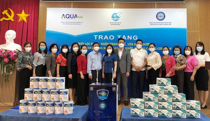 Theo chương trình thỏa thuận, Công ty cổ phần tập đoàn nghiên cứu xử lý nước sạch Aqua Việt Nam trao tặng 14 máy lọc nước, 441 hộp sữa dinh dưỡng Mejilac, 120 nghìn khẩu trang y tế với tổng số tiền 571,5 triệu đồng cho các cấp Hội trong tỉnh, Mẹ VNAH, trẻ em khó khăn sau dịch. Ngoài ra, Công ty còn hỗ trợ giảm 50% sản phẩm máy lọc nước cho lực lượng tuyến đầu phòng, chống dịch, gia đình chính sách, hộ nghèo toàn tỉnh có nhu cầu sử dụng thông qua Hội LHPN cùng cấp.
