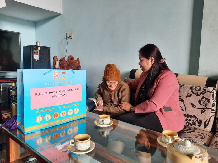 Trước đó, lãnh đạo Hội LHPN tỉnh đã đến thăm, tặng quà cho 03 mẹ Việt Nam anh hùng tại thị xã An Khê: mẹ Lê Thị Tào, mẹ Lê Thị Hàng, mẹ Phùng Thị Đâu.