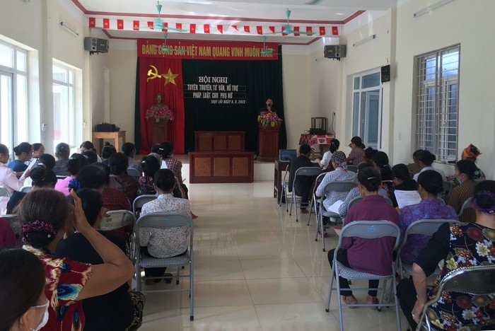 Đồng chí Hoàng Văn Trường – Giám đốc Trung tâm Trợ giúp pháp lý Nhà nước tỉnh tư vấn hỗ trợ pháp luật cho phụ nữ tại xã Thụy Lôi, huyện Tiên Lữ