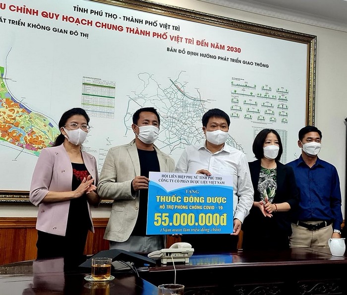 Trong dịp này, Hội LHPN tỉnh tặng 170 phần quà; Công ty cổ phần Dược liệu Việt Nam trao tặng 1.376 hộp thuốc đông dược; Hội phụ nữ Công an tỉnh tặng 66 phần quà, tổng trị giá 235 triệu đồng, góp phần cùng các địa phương khống chế và đẩy lùi dịch bệnh Covid-19.