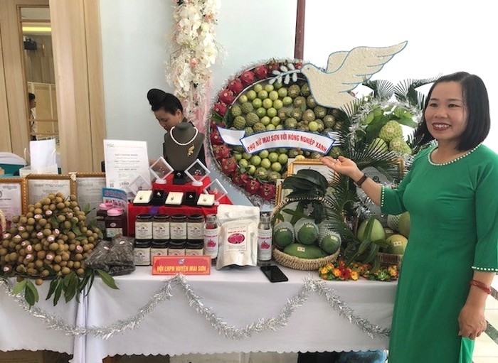 Gian hàng trừng bày của Hội LHPN huyện mai Sơn, tỉnh Sơn La