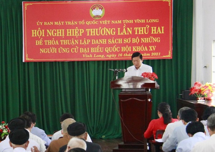 Hội nghị hiệp thương lần thứ hai lập danh sách sơ bộ người ứng cử đại biểu Quốc hội khóa XV tại tỉnh Vĩnh Long