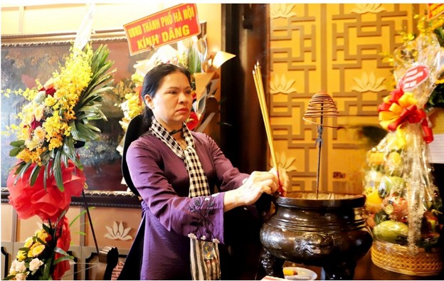 Đoàn đại biểu Hội LHPN Việt Nam do bà Hà Thị Nga - Ủy viên Trung ương Đảng, Chủ tịch Hội LHPN Việt Nam làm trưởng đoàn dâng hương, dâng hoa tưởng nhớ Chủ tịch Hồ Chí Minh.