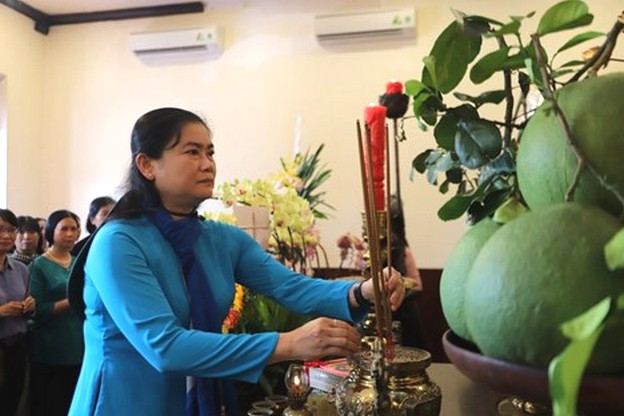 Chiều 12/6, tại Bảo tàng Hồ Chí Minh (quận 4, TPHCM), Đoàn đại biểu Hội LHPN Việt Nam do bà Hà Thị Nga - Ủy viên Trung ương Đảng, Chủ tịch Hội LHPN Việt Nam - làm trưởng đoàn đã dâng hương, dâng hoa tưởng nhớ Chủ tịch Hồ Chí Minh và Chủ tịch Tôn Đức Thắng.