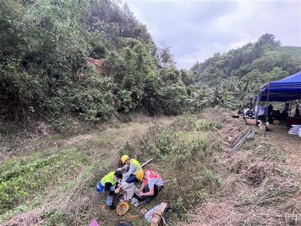 Lực lượng cứu hộ làm nhiệm vụ tại hiện trường vụ rơi máy bay của hãng hàng không Phương Đông Trung Quốc tại khu tự trị dân tộc Choang Quảng Tây, Trung Quốc, ngày 22/3/2022. (Ảnh: THX/TTXVN)