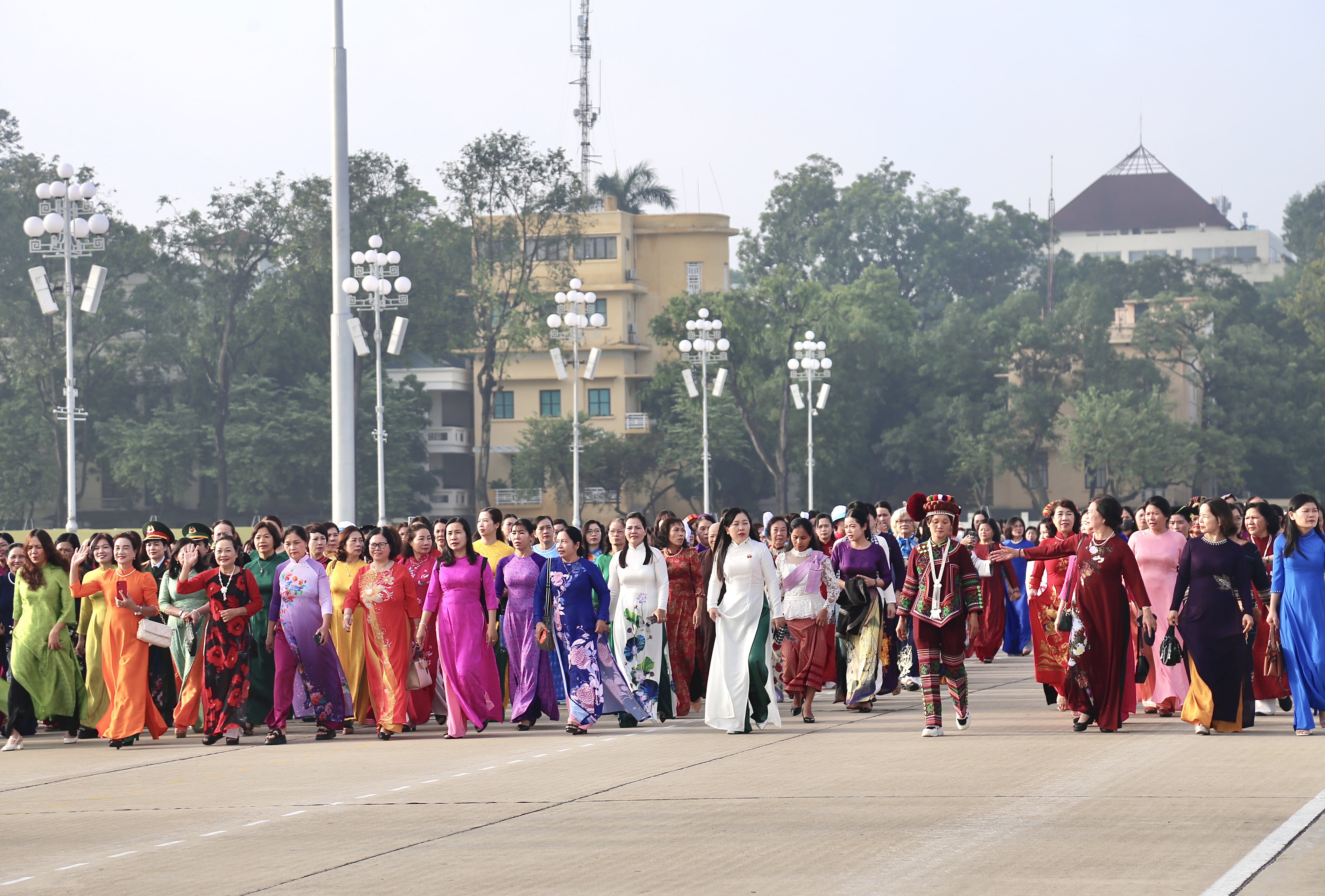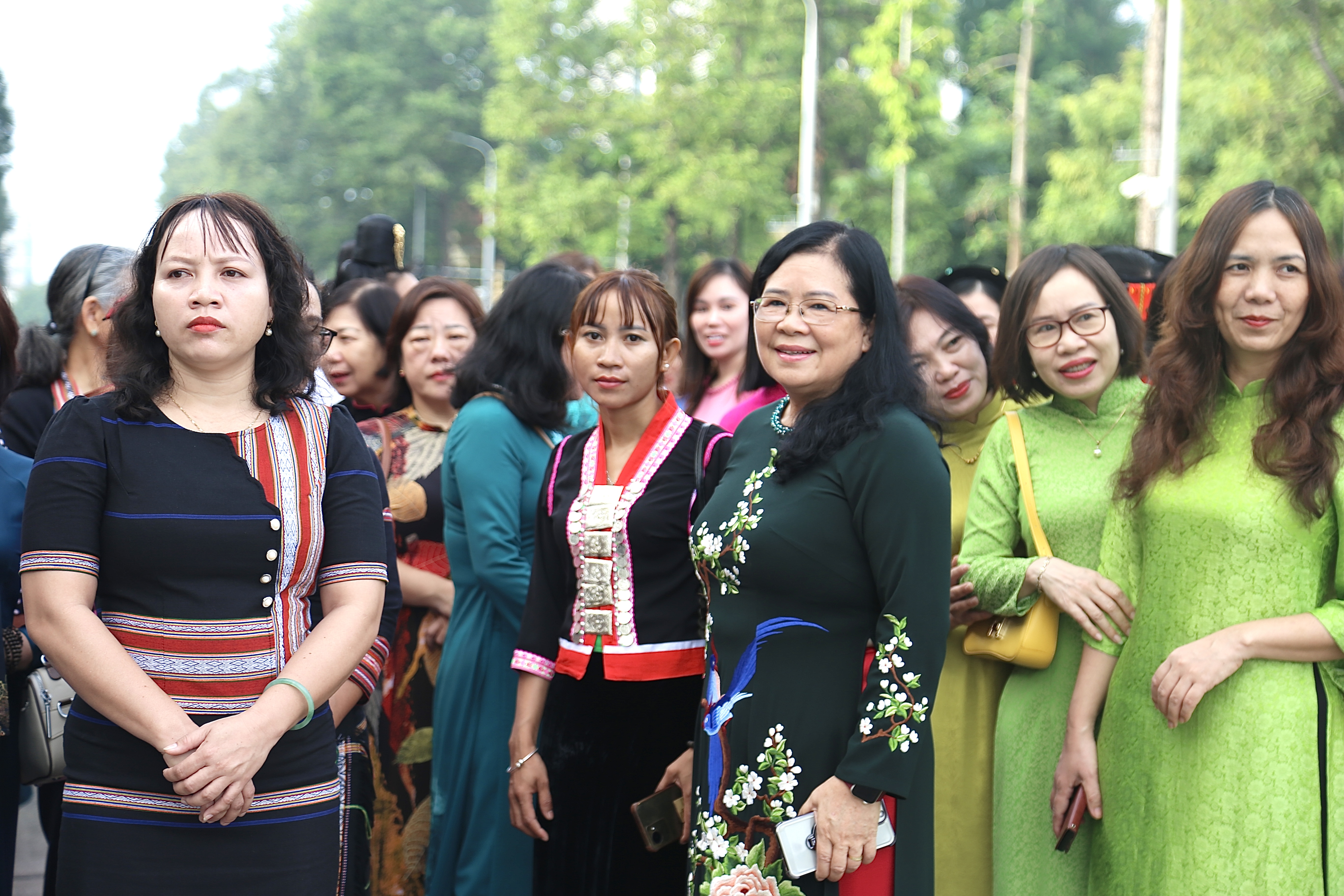 Trong không khí phụ nữ cả nước đang sôi nổi thi đua, tổ chức các hoạt động ý nghĩa chào mừng kỷ niệm 95 năm thành lập Hội LHPN Việt Nam (20/10/1930-20/10/2025), Đại hội thi đua yêu nước của Hội LHPN Việt Nam giai đoạn 2020 - 2025 tiến tới Đại hội Thi đua yêu nước toàn quốc lần thứ XI, trao Giải thưởng Phụ nữ Việt Nam năm 2025, đoàn đại biểu tham dự Đại hội Thi đua yêu nước lần thứ V và các thế hệ cán bộ Hội, phụ nữ cả nước vô cùng vinh dự và xúc động được hội tụ về Quảng trường Ba Đình lịch sử, thành kính, nghiêng mình tưởng nhớ Bác, bày tỏ lòng biết ơn vô hạn đến Chủ tịch Hồ Chí Minh muôn vàn kính yêu và báo công dâng Bác về những thành quả tốt đẹp trong hành trình 95 năm phát triển của Hội cũng như kết quả phong trào thi đua giai đoạn 2020 - 2025 của các tầng lớp phụ nữ Việt Nam.
