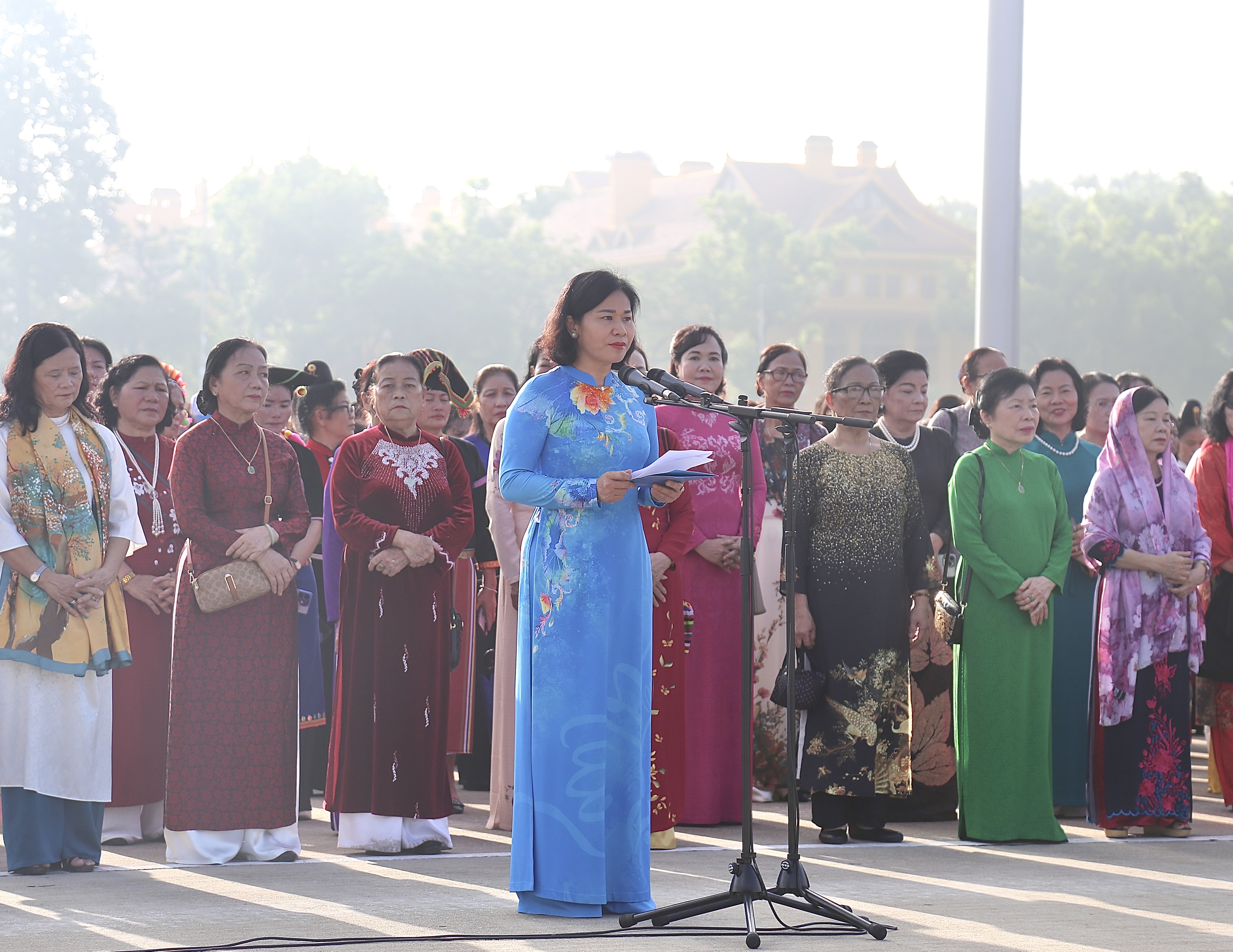 Phát biểu tại buổi lễ, Chủ tịch Hội LHPN Việt Nam Nguyễn Thị Tuyến khẳng định: “Trước Anh linh của Chủ tịch Hồ Chí Minh, cán bộ, hội viên phụ nữ cả nước xin nguyện: tiếp tục tích cực học tập và làm theo tư tưởng, đạo đức, phong cách của Bác Hồ kính yêu; một lòng trung thành với lý tưởng của Đảng; kiên định mục tiêu độc lập dân tộc và chủ nghĩa xã hội, phát huy vai trò phụ nữ trong sự nghiệp xây dựng, phát triển đất nước phồn vinh, văn minh, hạnh phúc. Kính mong Bác phù hộ, soi đường cho đất nước bước vào kỷ nguyên mới, kỷ nguyên phát triển thịnh vượng và hùng cường, phù hộ cho phụ nữ Việt Nam ngày càng tiến bộ, phát huy tiềm năng, trí tuệ và khát vọng vươn xa, xứng đáng với lời khen tặng của Người “Non sông gấm vóc Việt Nam do phụ nữ ta, trẻ cũng như già, ra sức dệt thêu mà thêm tốt đẹp rực rỡ””.