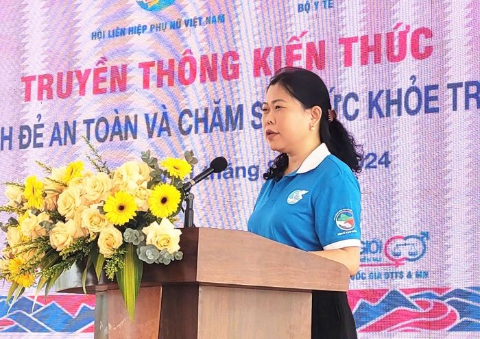 Bà Lò Thị Thu Thủy, Trưởng Ban Dân tộc - Tôn giáo (Hội LHPN Việt Nam) phát biểu tại sự kiện