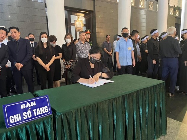 Ủy viên Trung ương Đảng, Chủ tịch Hội LHPN Việt Nam Hà Thị Nga ghi sổ tang bày tỏ sự tiếc thương trước sự ra đi của nguyên Phó Thủ tướng Nguyễn Khánh
