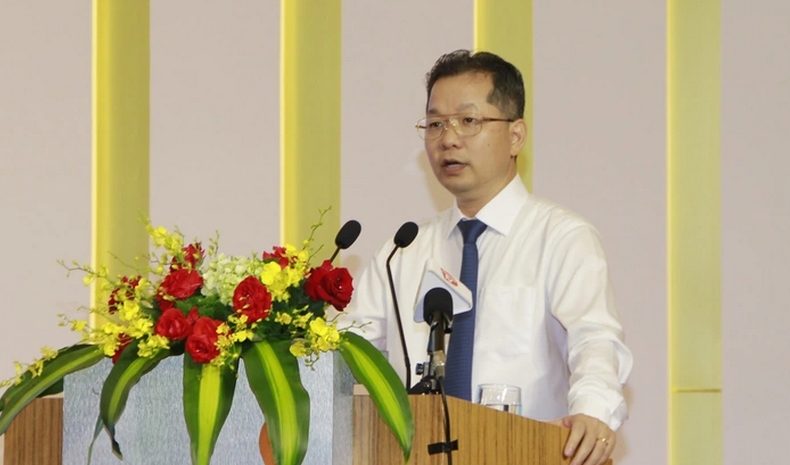Đồng chí Nguyễn Văn Quảng, Ủy viên BCH TW Đảng, Bí Thư Thành ủy thành phố Đà Nẵng phát biểu tại Hội nghị