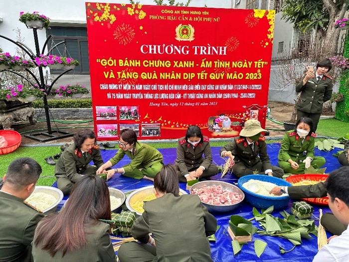 Trong khuôn khổ chương trình, Hội Phụ nữ Công an tỉnh cũng đã phối hợp với Phòng Hậu cần Công an tỉnh tổ chức chương trình “Gói bánh chưng xanh - Ấm tình ngày Tết” và tặng quà dịp Tết Nguyên đán 2023.