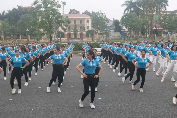 Một số tiết mục dân vũ biểu diễn tại Hội thi Hội thi đã diễn ra màn đồng diễn tập thể bài “Xinh tươi Việt Nam” với sự tham gia của 144 thí sinh là hội viên phụ nữ của 10 đội thi đến từ 10 huyện, thị xã, thành phố trong tỉnh; cùng với đó là 20 tiết mục dân vũ thể thao, sôi nổi, vui tươi trên nền nhạc các ca khúc ca ngợi quê hương, đất nước, gia đình, ca ngợi truyền thống tốt đẹp của phụ nữ Việt Nam. Các đội thi đã có nhiều sáng tạo trong cách lựa chọn bài nhạc, tập luyện kỹ lưỡng, đầu tư công phu từ ý tưởng đến dàn dựng, lựa chọn trang phục để lại nhiều ấn tượng, tạo không khí sôi nổi, thu hút người xem.