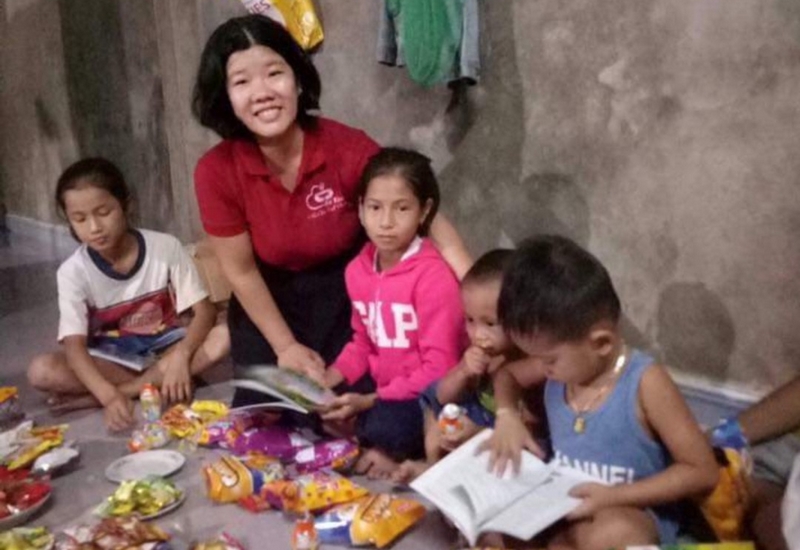 Lớp học tình thương do chị Hồng Phúc đỡ đầu, kết nối với Sư cô Hiền Thảo ở chùa Phước Sơn, hoạt động từ nhiều năm qua rất đặc biệt, vừa dạy xóa mù cho người lớn không biết chữ, lại vừa kiêm luôn "phụ đạo", giúp cho các em học sinh phổ thông trong xóm theo kịp chương trình học ở trên lớp.