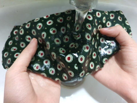 - Cách giặt khẩu trang vải: cho khẩu trang vải vào ngâm trong nước sôi 5 phút. Đây là thao tác cần làm để diệt sạch virus, vi khuẩn, bụi bẩn trên khẩu trang vải. Sau đó vò nhẹ bằng xà phòng diệt khuẩn.