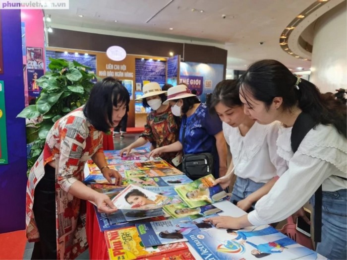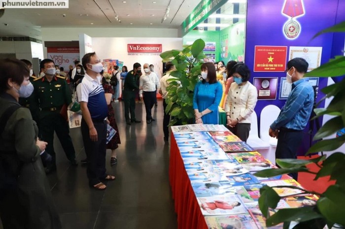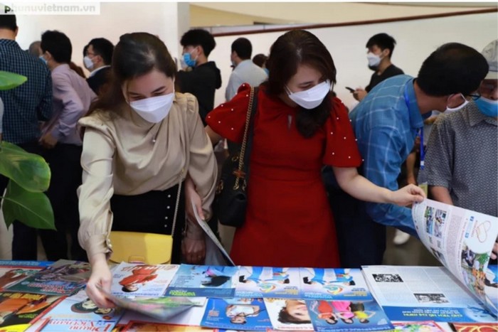 Bạn đọc hào hứng thưởng thức các ấn phẩm của Báo Phụ nữ Việt Nam tại Hội Báo toàn quốc 2022