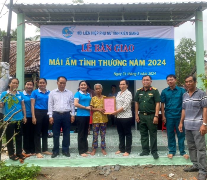 Hội LHPN tỉnh Kiên Giang Nguyễn Thị Hòa Hiệp trao quyết định bàn giao nhà Mái ấm tình thương