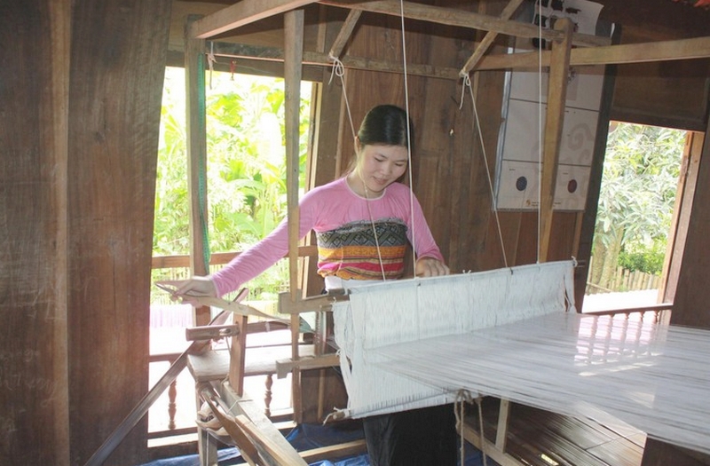 Phụ nữ dân tộc thiểu số dệt vải trong dự án hợp tác với Chie.