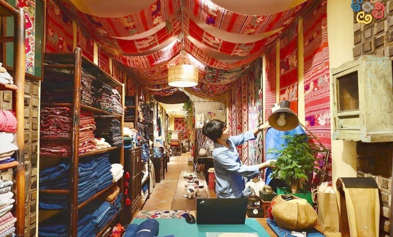 Vải thổ cẩm được trưng bày tại không gian của Chie.