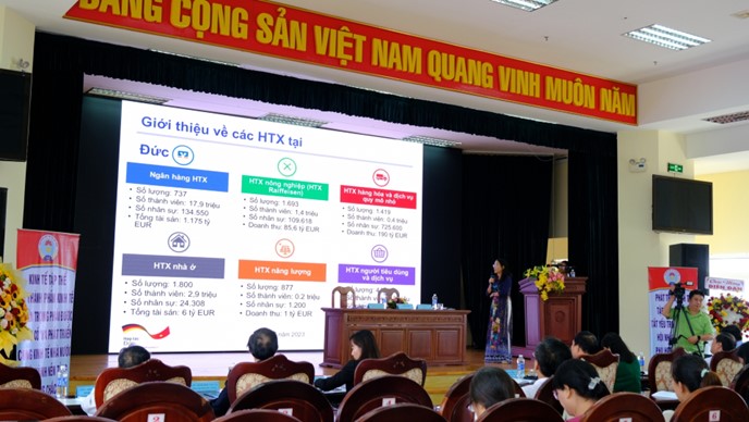Bà Nguyễn Thị Tuyết Minh - Giám đốc Dự án DGRV tại Việt Nam cũng chia sẻ tại diễn đàn với chủ đề “Góc nhìn của DGRV đối với vai trò của bình đẳng giới trong kinh tế tập thể”