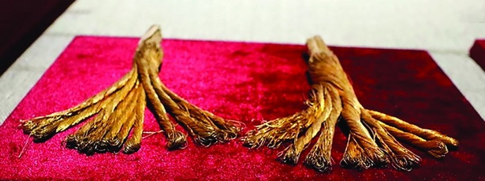 Chỉ kim tuyến được phụ nữ Hà Nội dùng để thêu cờ đỏ sao vàng, chuẩn bị cho ngày Tổng khởi nghĩa tháng 8/1945. Hiện vật này đang được lưu giữ tại Bảo tàng Lịch sử Quốc gia Việt Nam