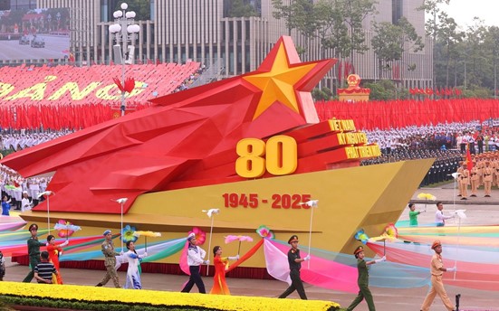 Xe mô hình biểu tượng 80 năm Ngày Cách mạng tháng Tám và Quốc khánh nước CHXHCN Việt Nam. (Ảnh: Văn Điệp/TTXVN) Sáng 2/9, tại Quảng trường Ba Đình lịch sử, Thủ đô Hà Nội, Ban Chấp hành Trung ương Đảng Cộng sản Việt Nam, Quốc hội, Chủ tịch nước, Chính phủ nước Cộng hòa xã hội chủ nghĩa Việt Nam, Ủy ban Trung ương Mặt trận Tổ quốc Việt Nam và thành phố Hà Nội đã tổ chức trọng thể Lễ kỷ niệm 80 năm Cách mạng tháng Tám thành công (19/8/1945-19/8/2025) và Quốc khánh nước Cộng hòa xã hội chủ nghĩa Việt Nam (2/9/1945-2/9/2025).