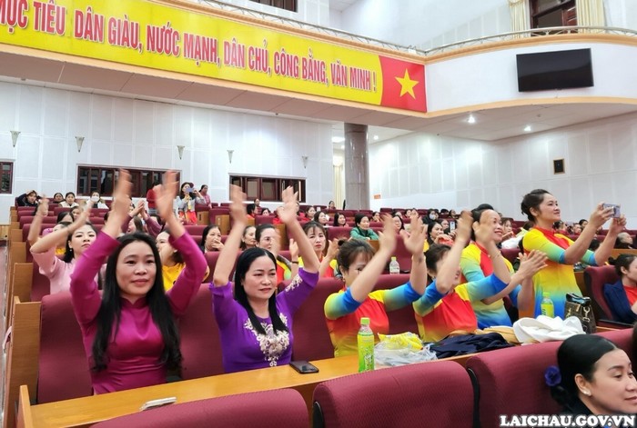 Hòa cùng các tiết mục với nhịp điệu sôi nổi, rộn rã trên nền các bài hát, bản nhạc là các ca khúc Việt Nam ca ngợi quê hương, đất nước, gia đình, truyền thống tốt đẹp của phụ nữ Việt Nam, đồng bào dân tộc Lai Châu là sự cổ vũ nhiệt tình của các khán giả.