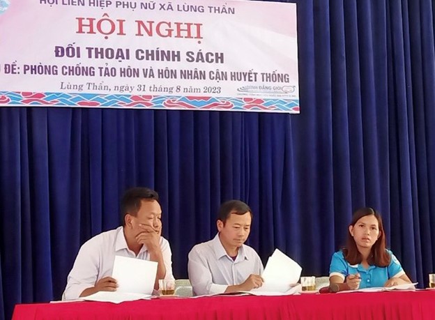 Nhiều hội nghị đối thoại chính sách về "Phòng chống tảo hôn và hôn nhân cận huyết thống" được Huyện Hội phối hợp với các cấp uỷ trên địa bàn huyện triển khai mở rộng