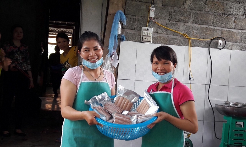 Hoạt động hỗ trợ phụ nữ có ảnh hưởng, năng lực, tự tin trong quá trình ra quyết định và được hỗ trợ để hưởng lợi từ các cơ hội gia tăng về kinh tế, xã hội thuộc dự án “Nâng cao vị thế kinh tế của phụ nữ thông qua thúc đẩy chuỗi giá trị nông nghiệp - Chuỗi giá trị ngành hàng thịt lợn” đã giúp hai chị hiện thực hóa ý tưởng khởi nghiệp kinh doanh của mình từ chính sản phẩm nông nghiệp của địa phương. Tuy nhiên dự án chỉ thúc đẩy một phần rất nhỏ là hỗ trợ về phần nâng cao năng lực, cụ thể là hỗ trợ kinh phí cho hai chị tham gia khóa tập huấn kiến thức liên quan đến nội dung khởi nghiệp, kiến thức vệ sinh an toàn thực phẩm, tư vấn về thị trường tiêu thụ và vay vốn (mức vay quy định 10 triệu đồng/hộ, thời gian cho vay 12 tháng). Các chi phi khác như dụng cụ, thiết bị để sản xuất, bảo quản xúc xích... các hộ thực hiện phải tự bỏ ra.
