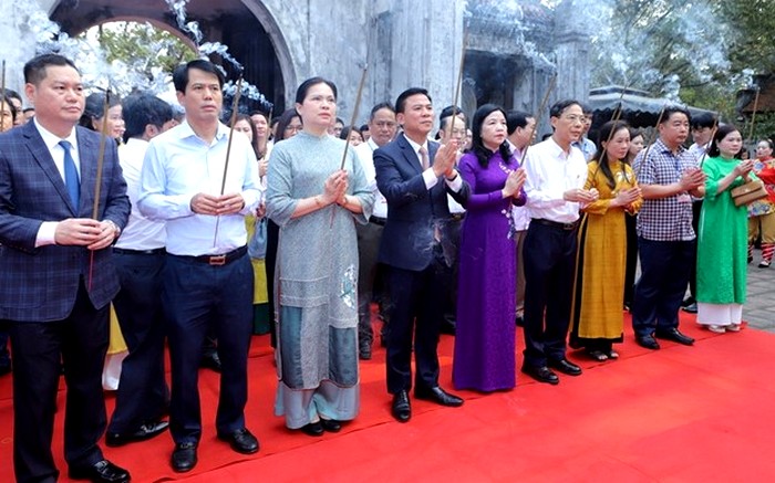 Trong không khí trang trọng, thành kính và tôn nghiêm, các đồng chí: Hà Thị Nga, Ủy viên Trung ương Đảng, Chủ tịch Hội LHPN Việt Nam; Đỗ Trọng Hưng, Ủy viên Trung ương Đảng, Bí thư Tỉnh ủy, Chủ tịch HĐND tỉnh Thanh Hóa và các đồng chí lãnh đạo tỉnh đã dâng hương kính cáo trước anh linh Anh hùng dân tộc Triệu Thị Trinh và các bậc tiền nhân trong cuộc khởi nghĩa chống quân Ngô xâm lược.