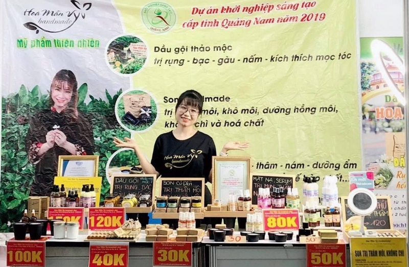 Mang dấu ấn phố cổ Hội An vào mỹ phẩm thuần thiên nhiên Vốn là một cán bộ làm việc tại Thành ủy Hội An, rồi chuyển sang làm cán bộ tại Hội LHPN TP. Hội An, Nguyễn Thị Mẫn Vy cho biết, ban đầu cô đến với mỹ phẩm thiên nhiên như một cuộc dạo chơi, với một thử nghiệm nho nhỏ. Đó là tự mày mò các công thức làm mặt nạ cho chồng tương lai trị mụn, đẹp hơn trong ngày cưới.