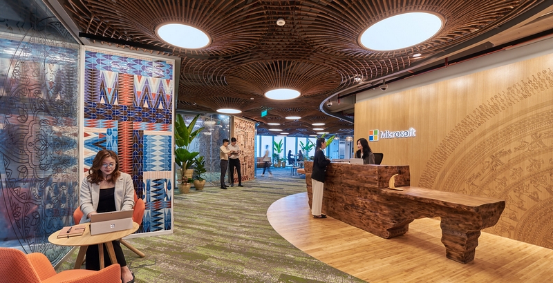 Văn phòng mới của Microsoft Việt Nam được thiết kế để áp dụng mô hình làm việc kết hợp (hybrid work) linh hoạt, đem lại sự tiện lợi, thoái mái tối đa cho các nhân viên