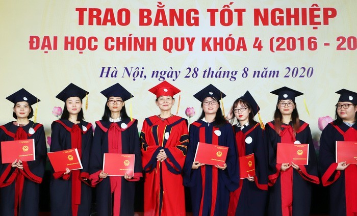 Chủ tịch Hội LHPNVN Hà Thị Nga trao bằng tốt nghiệp ĐH chính quy cho sinh viên xuất sắc Trong tổng số 491 sinh viên của khóa IV (2016-2020), Học viện Phụ nữ Việt Nam đã trao bằng tốt nghiệp ĐH chính quy cho 227 em có đủ điều kiện xét cấp bằng tốt nghiệp đợt 1. Trong đó, có 3 sinh viên đỗ tốt nghiệp loại xuất sắc, 27 sinh viên đỗ tốt nghiệp loại giỏi, 172 sinh viên đỗ loại khá và 25 sinh viên đỗ loại trung bình.