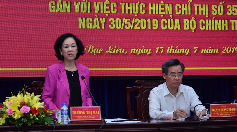 Ngày 15/7, tại Bạc Liêu, Ban Dân vận Trung ương tổ chức Hội nghị đánh giá 1 năm thực hiện Chỉ thị 21-CT/TW của Ban Bí thư về tiếp tục đẩy mạnh công tác phụ nữ trong tình hình mới gắn với thực hiện Chỉ thị 35-CT/TW ngày 30/5/2019 của Bộ Chính trị. Đồng chí Trương Thị Mai, Ủy viên Bộ Chính trị, Bí thư Trung ương Đảng, Trưởng ban Dân vận Trung ương dự và chủ trì Hội nghị.