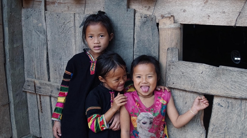 Trẻ em vui đùa hồn nhiên trước ống kính của khách du lịch