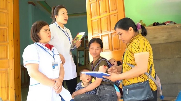 Chị Lý Thị Hoa (bìa phải) tham gia thực hiện y tế thôn bản