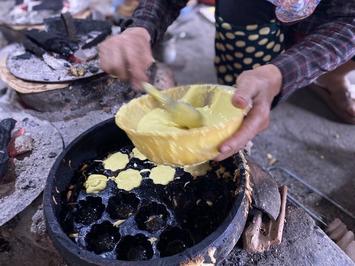 Bột được bà Công khéo léo đổ vào khuôn bánh