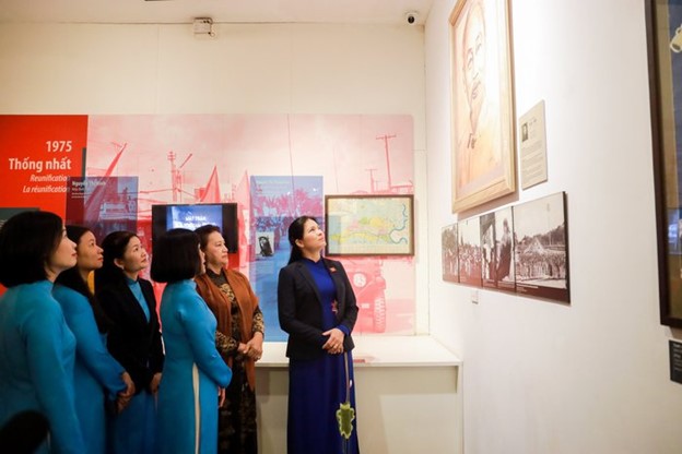 Bức tranh "chân dung Bác Hồ" được trưng bày tại vị trí trang trọng tại Bảo tàng Phụ nữ Việt Nam