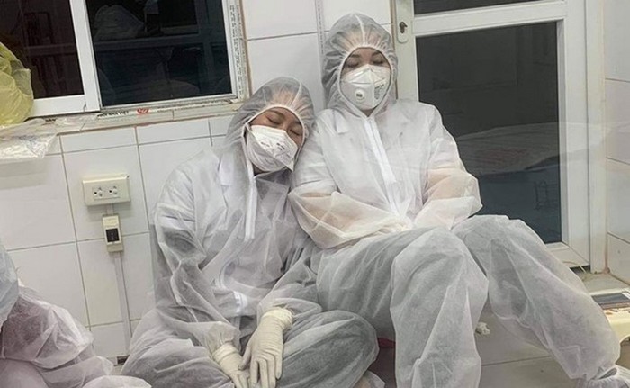 Các nữ nhân viên y tế mệt nhoài trong trận chiến chống Covid-19.