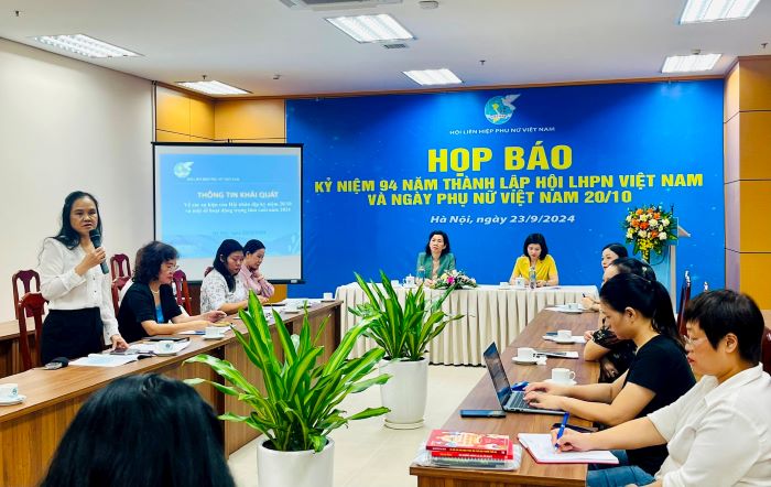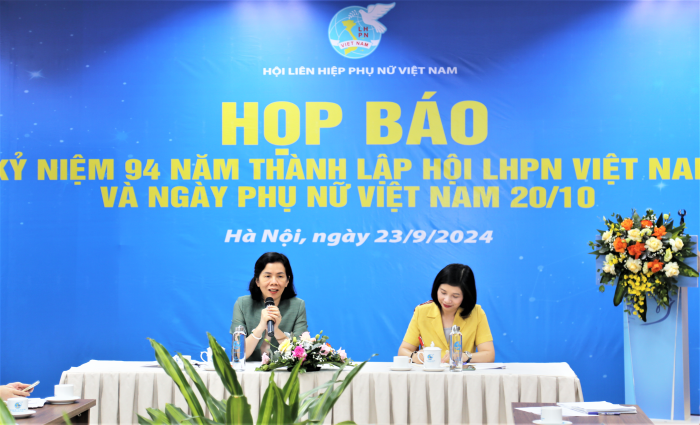 Phó Chủ tịch Hội LHPN Việt Nam Nguyễn Thị Minh Hương (trái ảnh) và Trưởng ban Tuyên giáo, TW Hội LHPN Việt Nam Nguyễn Thị Kim Dung (phải ảnh) chủ trì buổi họp báo Tại cuộc họp báo, Phó Chủ tịch Hội LHPN Việt Nam Nguyễn Thị Minh Hương cho biết trong tháng 10, Hội LHPN Việt Nam sẽ có chuỗi hoạt động kỷ niệm 94 năm thành lập Hội LHPN Việt Nam và Ngày Phụ nữ Việt Nam 20/10 nhằm tôn vinh sự cống hiến của những tập thể, cá nhân phụ nữ xuất sắc trên mọi lĩnh vực, đồng thời là diễn đàn chia sẻ thông tin, kinh nghiệm để phụ nữ trong và ngoài nước cùng học hỏi lẫn nhau. Phó Chủ tịch mong rằng các hoạt động sẽ nhận được sự quan tâm của các bộ, ban, ngành, đơn vị, cơ quan báo chí và các phóng viên theo dõi sự kiện.