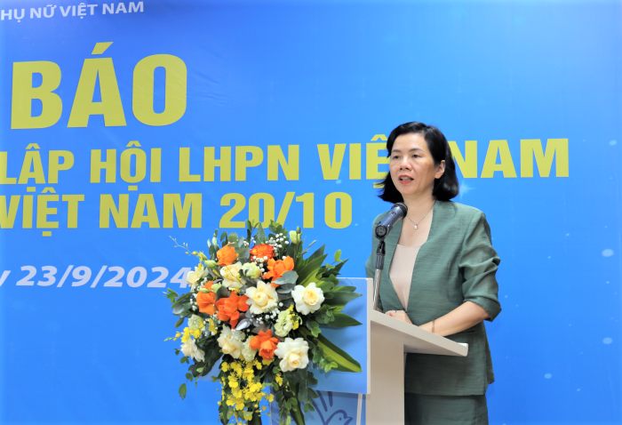 Phó Chủ tịch Hội LHPN Việt Nam Nguyễn Thị Minh Hương phát biểu tại cuộc họp báo chiều ngày 23/9