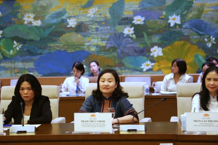 Giới thiệu về hoạt động của nhóm Nữ đại biểu Quốc hội Việt Nam, bà Phạm Thúy Chinh, Phó Chủ nhiệm Ủy ban Tài chính - Ngân sách, Phó Chủ tịch Nhóm Nữ đại biểu Quốc hội Việt Nam cho biết, trong nhiệm kỳ XV, Quốc hội Việt Nam có 151 nữ đại biểu, chiếm tỷ lệ 30,26%. Qua các nhiệm kỳ, nhóm Nữ đại biểu Quốc hội đã hoạt động rất tích cực, góp phần nâng cao hiệu quả hoạt động của Quốc hội, đặc biệt là trong hoạt động xây dựng pháp luật, giám sát các vấn đề liên quan đến giới và bình đẳng giới, phòng chống bạo lực gia đình.