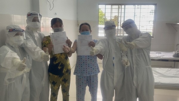 Các “bóng hồng” Trung tâm Hồi sức tích cực Vĩnh Long mừng vui khi bệnh nhân COVID-19 được về nhà.