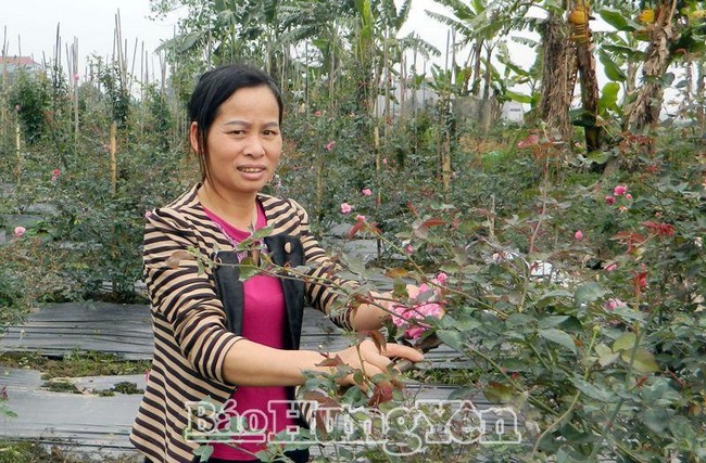 Không chỉ làm giàu cho bản thân, chị Gần còn giúp đỡ nhiều chị em phụ nữ khác trong xã Minh Hải trồng hoa hồng bằng cách hỗ trợ về cây giống, phân bón, kỹ thuật và bao tiêu sản phẩm để các chị phát triển kinh tế gia đình.