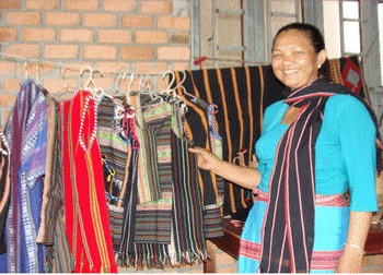 Năm 2010, chị mạnh dạn đứng ra xin thành lập cơ sở dệt thổ cẩm và may các loại trang phục thổ cẩm, tạo việc làm cho 23 chị em trong chi hội, đồng thời hỗ trợ cho 3 chị đi học may để nâng cao tay nghề. Chị đã chủ động liên hệ với các siêu thị, hội chợ trong và ngoài tỉnh để giới thiệu sản phẩm. Hiện nay, sản phẩm của cơ sở chị được bày bán tại các tỉnh: Bình Phước, Bạc Liêu, Đắk Nông, Bình Thuận.