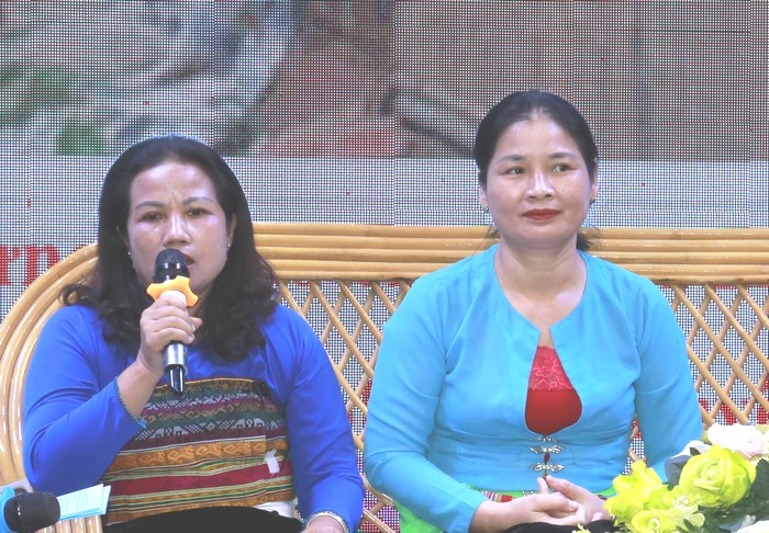 Chị Thuận (trái ảnh) giao lưu tại hội nghị